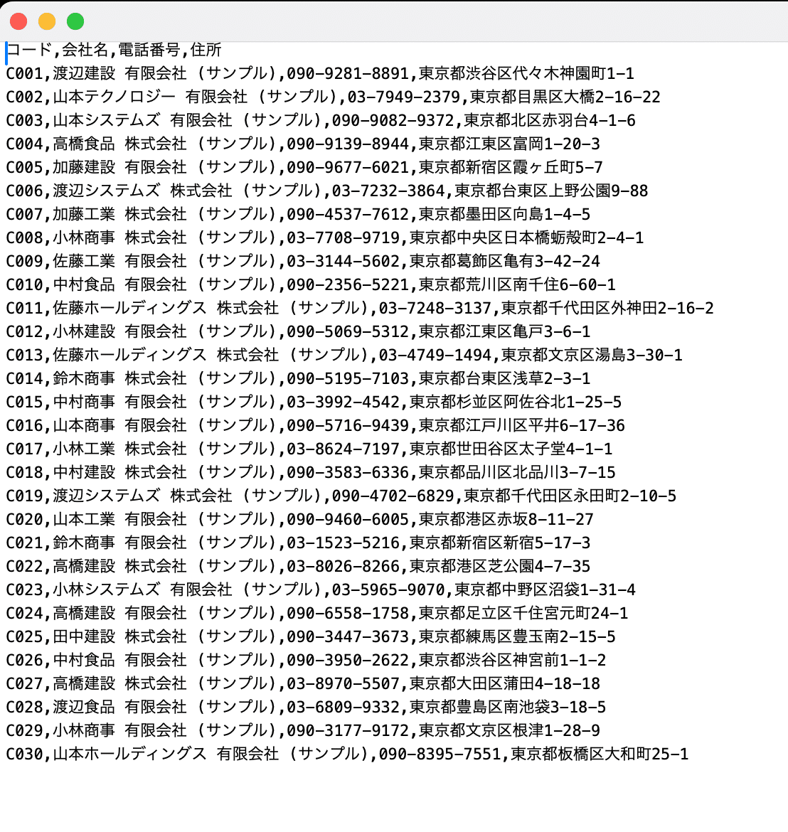 最初に、訪問先の会社住所リストを customer_list.txt として保存します。