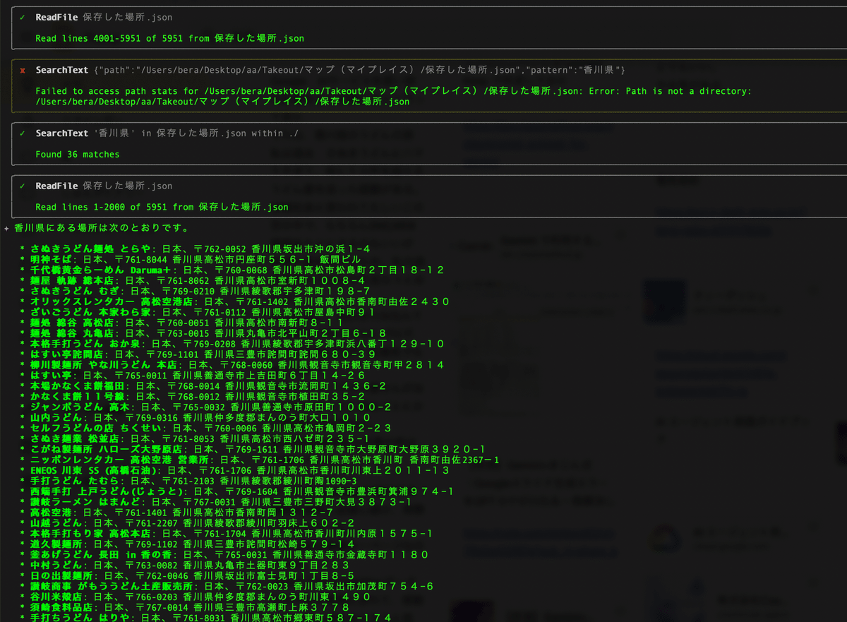 GoogleMapからエクスポートしたCSVファイルをGeminiCLIで列挙